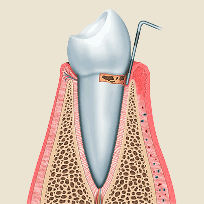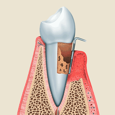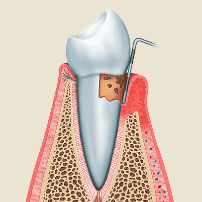 Dort, wo die krankmachenden Keime für die Zahnbürste nicht erreichbar sind, vermehren sie sich besonders stark. Neue Ablagerungen an den Zahnhälsen entstehen, die entlang der Zahnhälse weiter in die Tiefe dringen – bis hin zum Kieferknochen! Dabei wird der Zahnhalteapparat nach und nach zerstört.