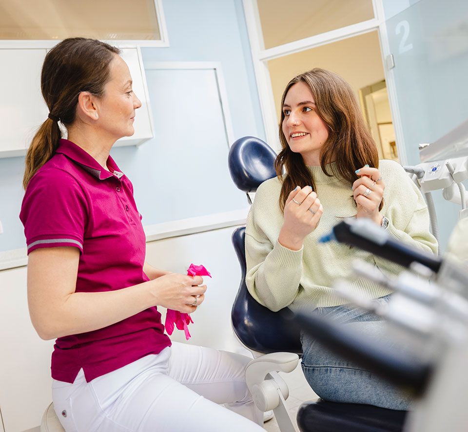 Zuerst sorgen wir für eine bessere allgemeine Mundhygiene: Bei der Vorbehandlung führen wir ein intensive professionelle Zahnreinigung durch, um den Biofilm zu entfernen und die Zahl krankmachender Keime zu reduzieren.